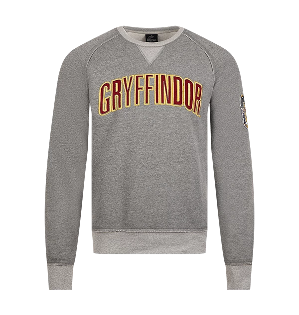 Add some magic to your wardrobe with this unisex Gryffindor sweatshirt. The light grey sweatshirt features a scarlet red and yellow design of the word ‘Gryffindor’ across the centre of the chest.