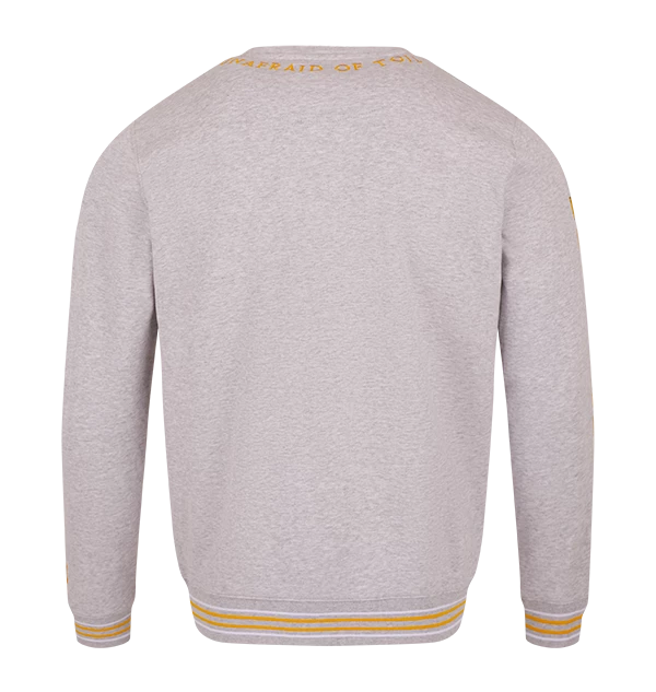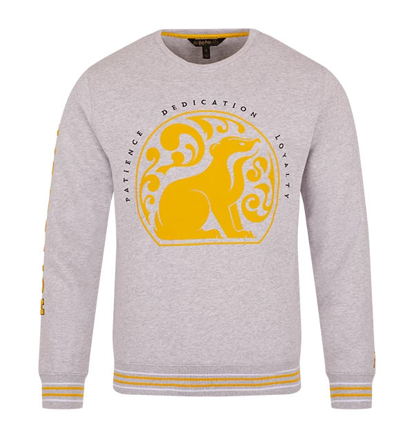 Add some magic to your wardrobe with this unisex Hufflepuff sweatshirt. The light grey sweatshirt features a bright yellow design of a badger, the Hufflepuff house animal. The key traits of Hufflepuff students’ ‘Patience’, ‘Dedication’ and ‘Loyalty’ features in the centre of the sweatshirt in black.