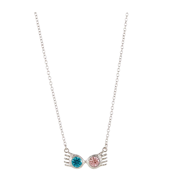 Take home this unique Luna’s Spectrespecs necklace featuring a pendant of Luna’s iconic Spectrespecs. The ‘exceptionally ordinary’ necklace is made of zinc alloy and is complete with stunning blue and pink acrylic stones.