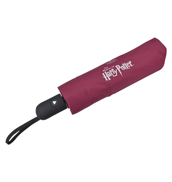 This Studio Tour exclusive item features a dual layer canopy with matching burgundy sleeve to help keep it safe and secure when not in use. The Making of Harry Potter tour branding is printed in white on both the outside of the umbrella and sleeve. It opens with the simple press of a button on the easy-grip handle. The perfect way to announce your fandom on the go!