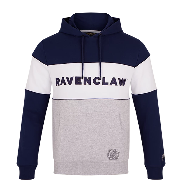 Get ready for the Sorting Hat ceremony with this bespoke Ravenclaw Hoodie. The hoodie features a colour block design in white, light grey and navy blue, the traditional colour of Ravenclaw. The hoodie is complete with the text ‘Ravenclaw’ appliqued across the chest.