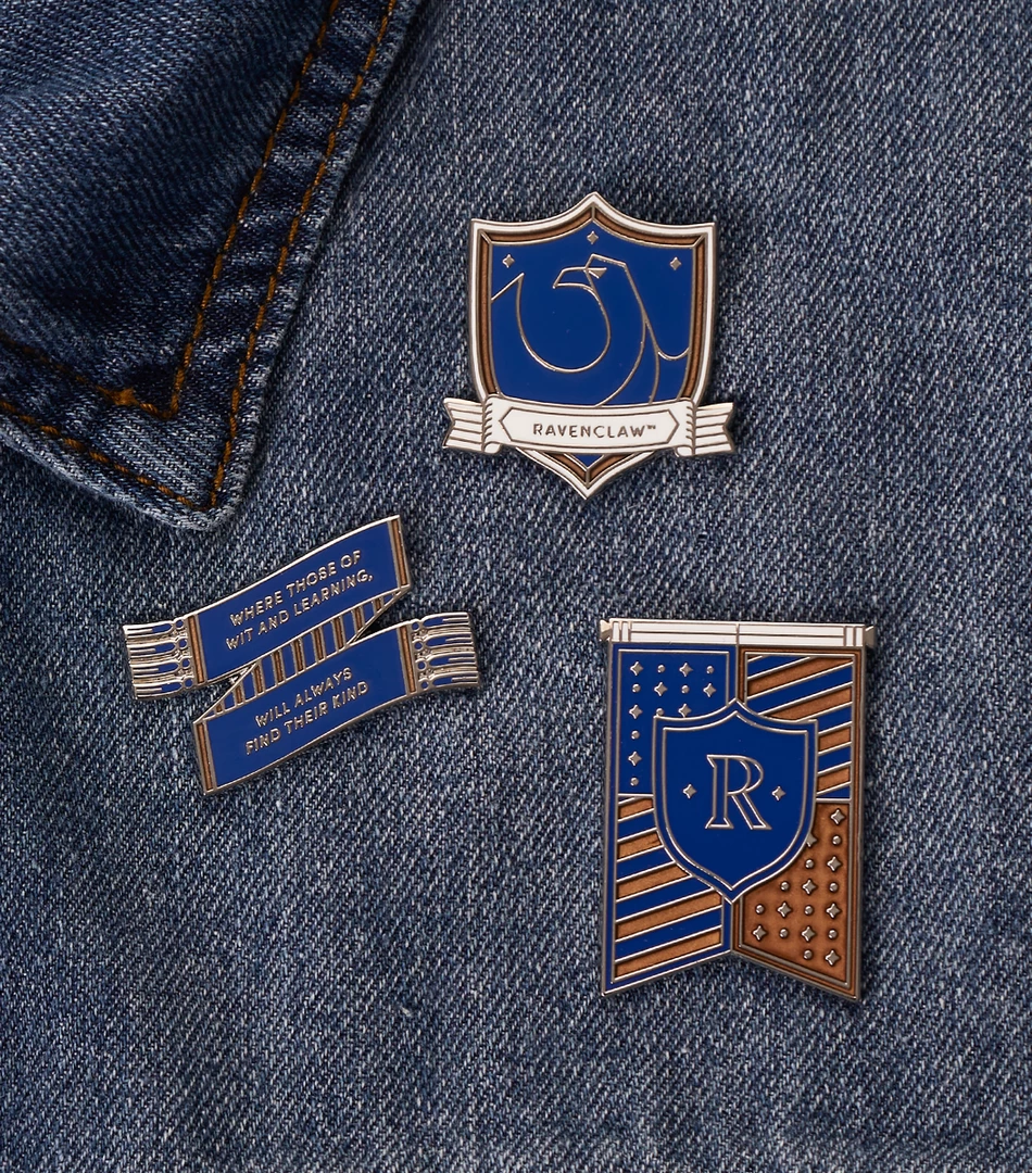 Proudly display which house you belong to with this Ravenclaw house crest pin. This pin features the Ravenclaw house crest. The pin is finely detailed, making it the perfect gift for all fans of Ravenclaw.