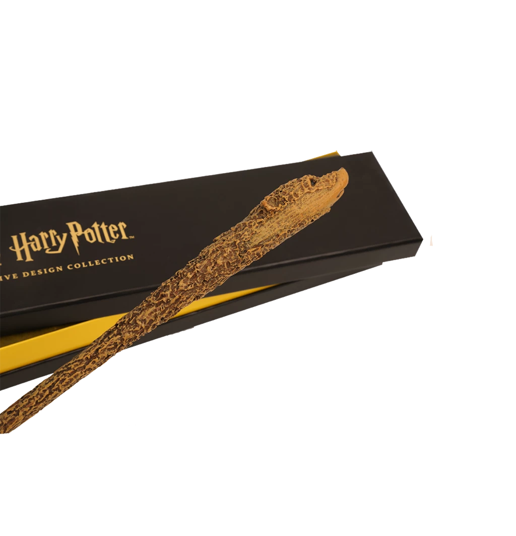 The bespoke wand is presented in a high-quality box and is complete with vellum paper overlay and information card. Part of the Exclusive Design Collection Series, this unique Hufflepuff Mascot wand is the perfect addition to add to any aspiring witch or wizard’s collectables.