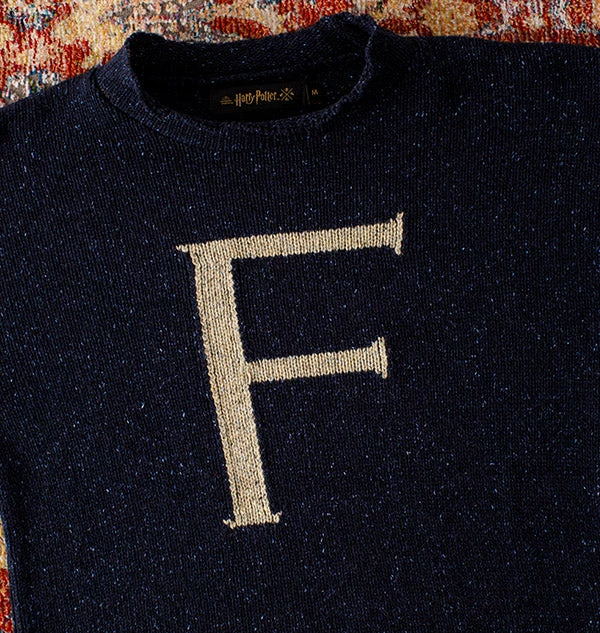 Add a touch of magic to your Christmas this year and add your very own initial to the knitted jumper that Mrs. Weasley gives to Harry during Harry Potter and the Philosopher’s Stone. This super cosy unisex knit, made from a soft lambโs wool blend, features the letter ‘F’ on the front, much like Harry’s ‘H’ jumper as seen on screen in the Harry Potter film series. The jumper makes the perfect wardrobe addition to keep you warm through the cold winter months, for fancy dress, or as a collectible gift for a loved one.